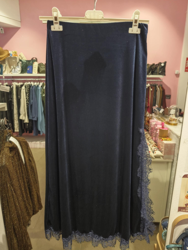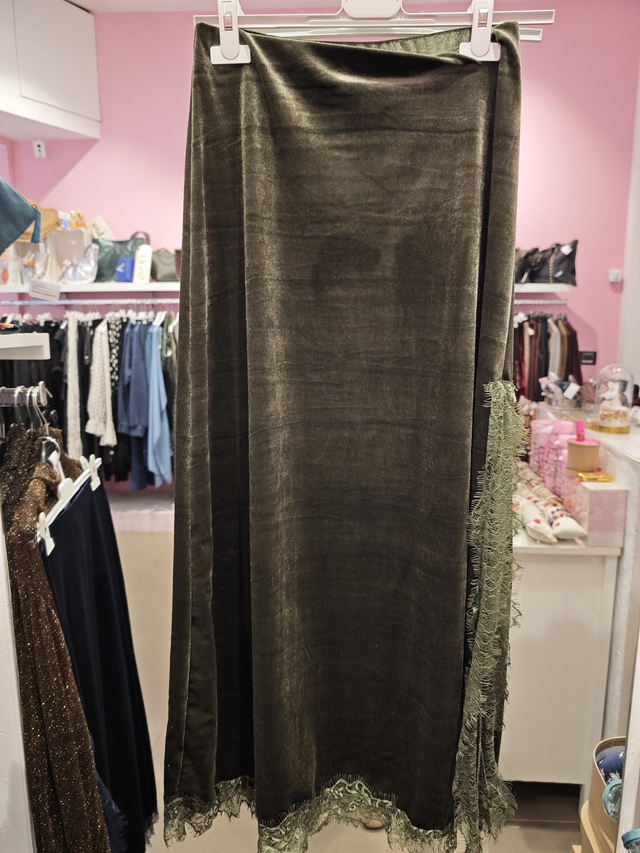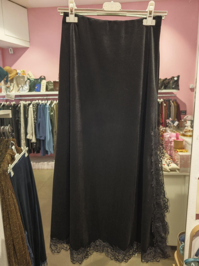 Falda Terciopelo Encaje Lateral
