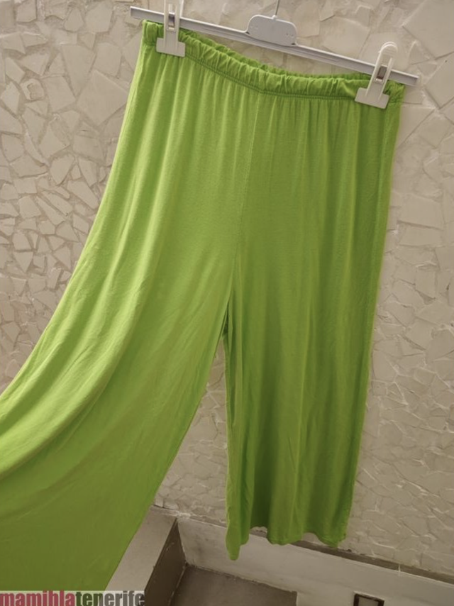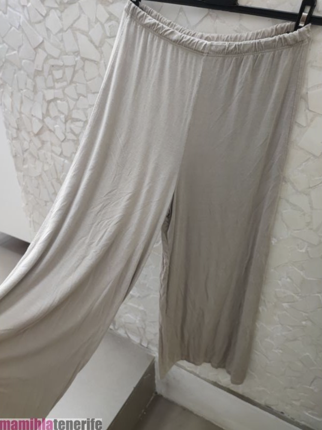 Pantalón a media pierna con mucha caída. Es ancho y queda sueltito.
